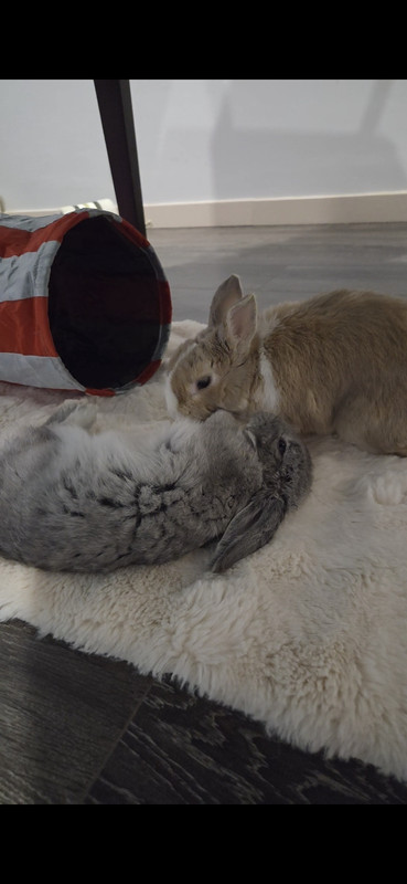 J'espère que mes bébés vont redevenir proches ! Chipsette était censé être une femelle, donc j'ai dû les séparer en attendant sa stérilisation pour éviter les bébés. Finalement, Chipsette est un mâle (les lapins rentrent les castagnettes quand ils sont stressés, et comme c'était un bébé, on a confondu avec une femelle ^^). Chipsette a maintenant 6 mois et ses hormones se sont développées, donc il attaque Sneaz ! J'espère que, quand il sera castré, ils pourront s'entendre, car Sneaz est adorable et veut vraiment aller le voir. Les cohabitations entre mâles sont compliquées, mais je vais persévérer, car mon Sneaz est un papi calme, donc si Chipsette se calme aussi, ça devrait être possible.